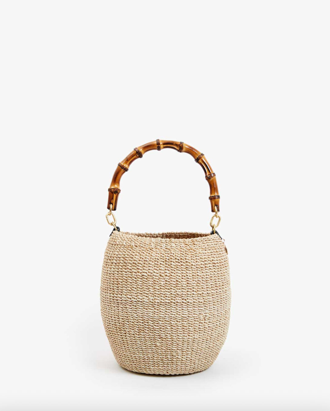 Get ready to carry your essentials in style with the Clare V. Pot De Miel basket bag! Inspired by a sweet honeypot, this charming cream bag holds your phone, keys, wallet, sunscreen, sunnies, and more. Handwoven from natural straw fibers and featuring a sleek bamboo handle, it offers a playful blend of nature and fashion. Add an extra strap to mix it up and make it truly yours!