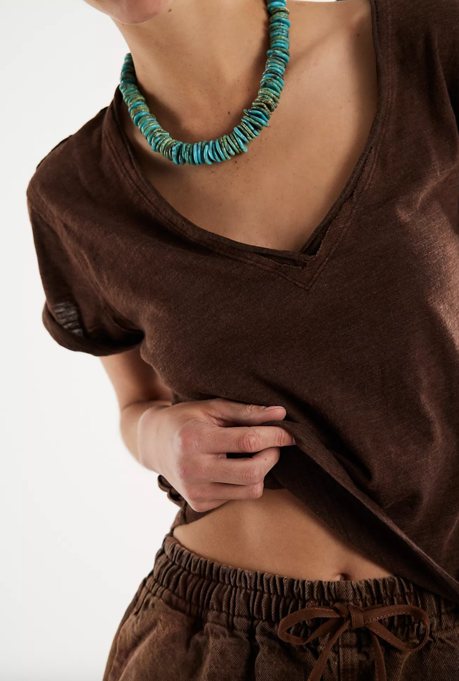 Throw on this We The Free tee and get ready to mix and match like a pro. The boxy, cropped silhouette and V-neckline make it the ultimate layering piece—wear it solo or style it over a tank for that perfect contrast moment. Soft jersey fabric keeps things comfy all day, while the dropped short sleeves with tacked cuffs add just the right amount of cool-girl edge. Plus, it's made with care for the planet, so you can feel good about what you're wearing.