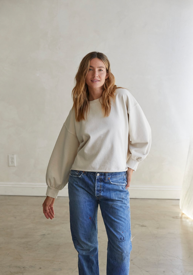 This Perfect White Tee Zayne Sweatshirt in Sugar is crafted from bestselling French terry fabric, offering a soft and cozy feel. Its relaxed silhouette delivers effortless comfort with a playful twist, highlighted by pintucked wrists and a clean raw hem. The crew neckline completes this full-length sweatshirt, true to size for easy styling and everyday wear.